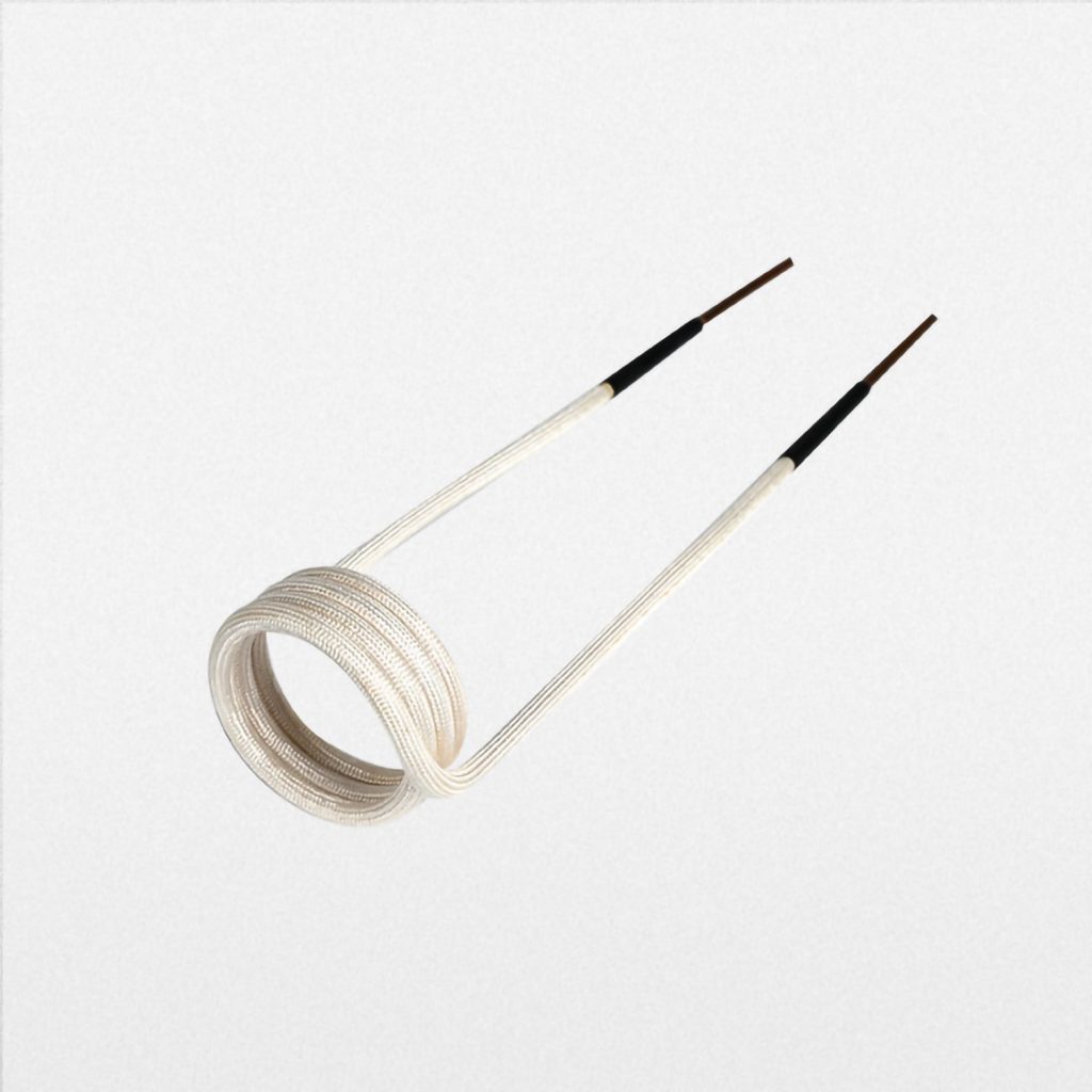 За нагряване на винтове, гайки, лагери и др. Спирална нагревателна намотка с диаметър 37mm в бял текстил за индукционни нагреватели.
