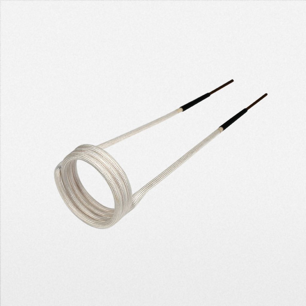 За нагряване на винтове, гайки, лагери и др. Спирална нагревателна намотка с диаметър 50mm в бял текстил за индукционни нагреватели.