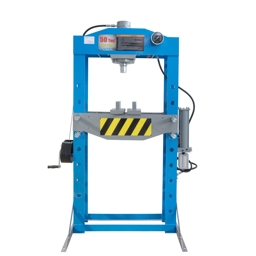 Тази 50-тонна тежкотоварна въздушно/хидравлична преса за сервизи е създадена за взискателни работилници, идеална за огъване, пресоване, изправяне и монтаж/демонтаж на лагери на камиони, машини и структурни компоненти.