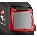 - Благодарение на системата Lift-Up, просто спуснете прозореца, съдържащ адияктичното стъкло по време на заваръчни операции, докато прозрачният стъкло осигурява защита, с отворен прозорец, за шлифовъчни операции или с други електрически инструменти, позволявайки работа със свободни ръце.