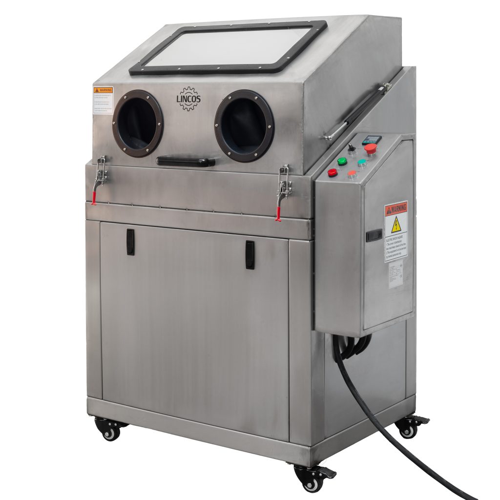 Работната зона е оборудвана с 24V, 20W безопасна лампа, осигуряваща видимост по време на работа. Вътрешната филтрационна система включва сменяеми филтърни хартии и структурен дизайн на водния резервоар, насърчаващ чиста циркулация на течността и удължаващ оперативната ефективност.