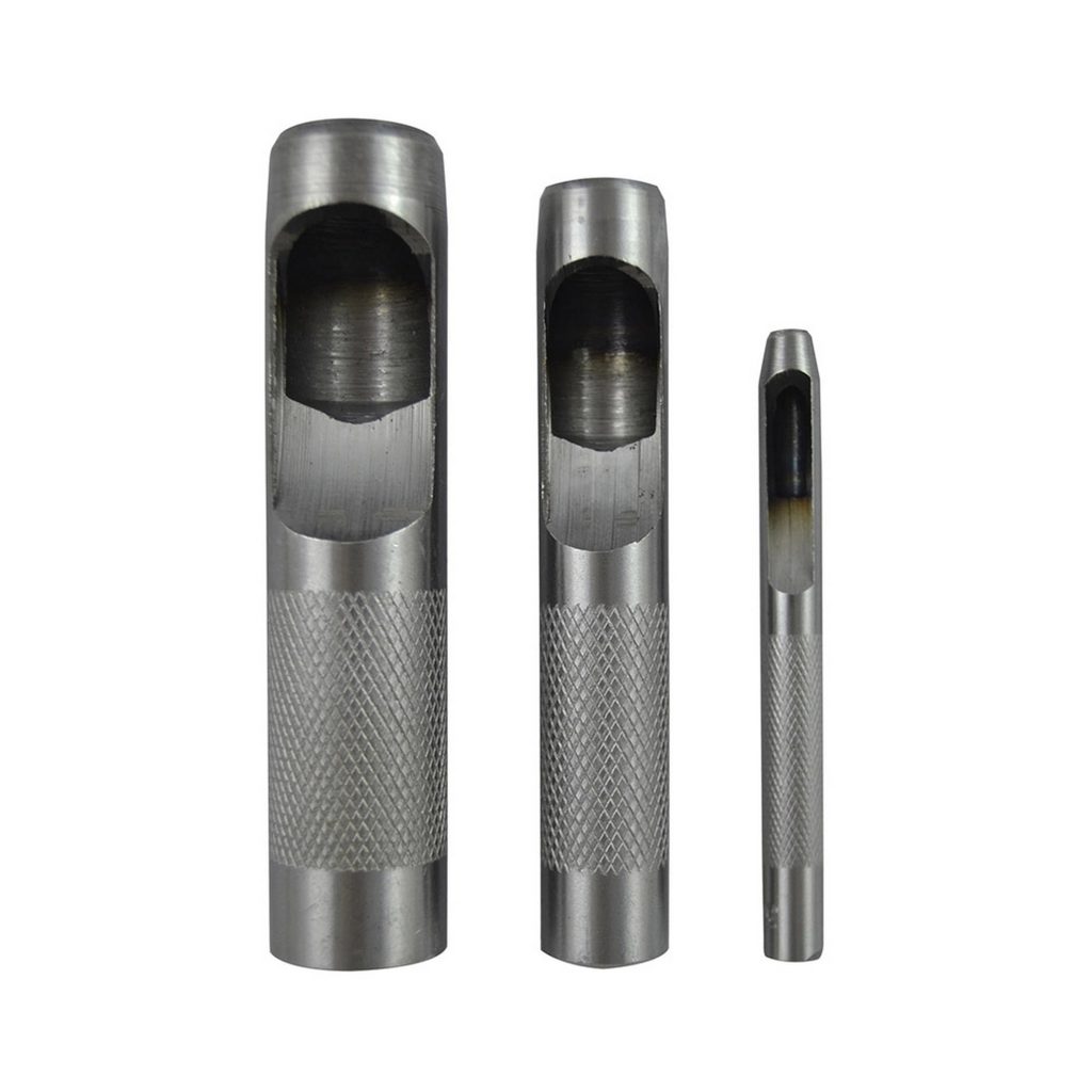 Комплект инструменти за пробиване с кръгли форми. Изработен от закален въглероден стомана. Устойчив, остър, добре закален с кръгло рязко острие и накатан корпус. Подходящ за пробиване на дупки в кожа, уплътнения, пластмаса, плат, хартия. Препоръчва се за соколарство, хобита, занаяти, моделиране, домашни ремонти или всякаква персонализирана работа с кожа и др. Просто поставете инструмента върху материала, където желаете да бъде дупката и го ударете с чук или чукче.