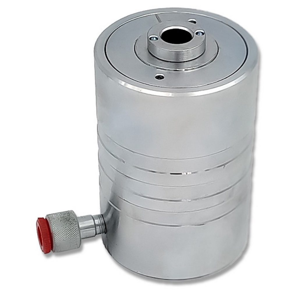 Хидравличен цилиндър с проходен и резбован отвор. Може да се използва с различни видове механични преси, предназначени за извличане на метални и гумени втулки, щифтове, съединения и др.