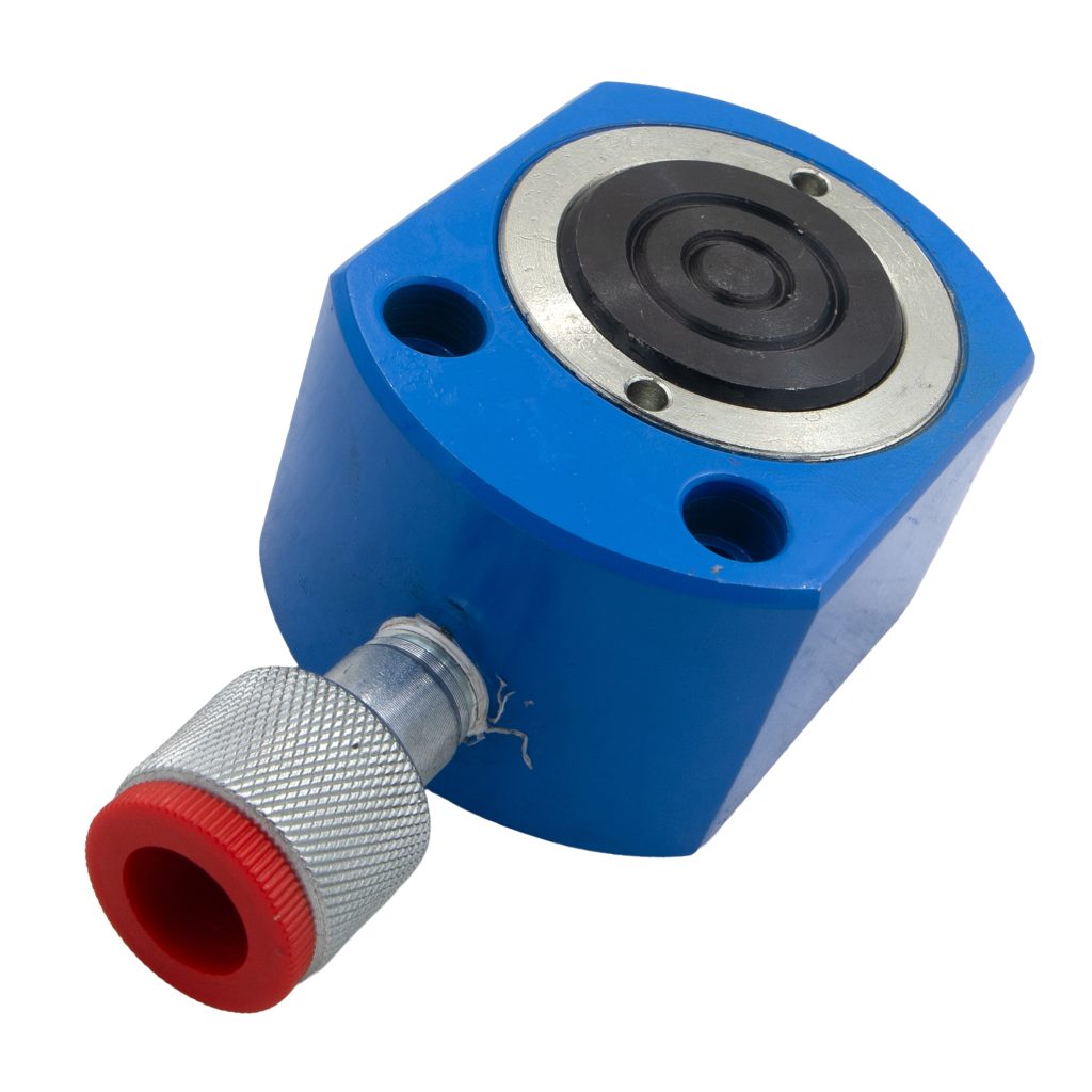 Плосък 10-тонен хидравличен цилиндър за натиск, 11 мм ход, 44 мм височина, 62.9 MPa налягане, 1/4"-13/16 NPT порт.