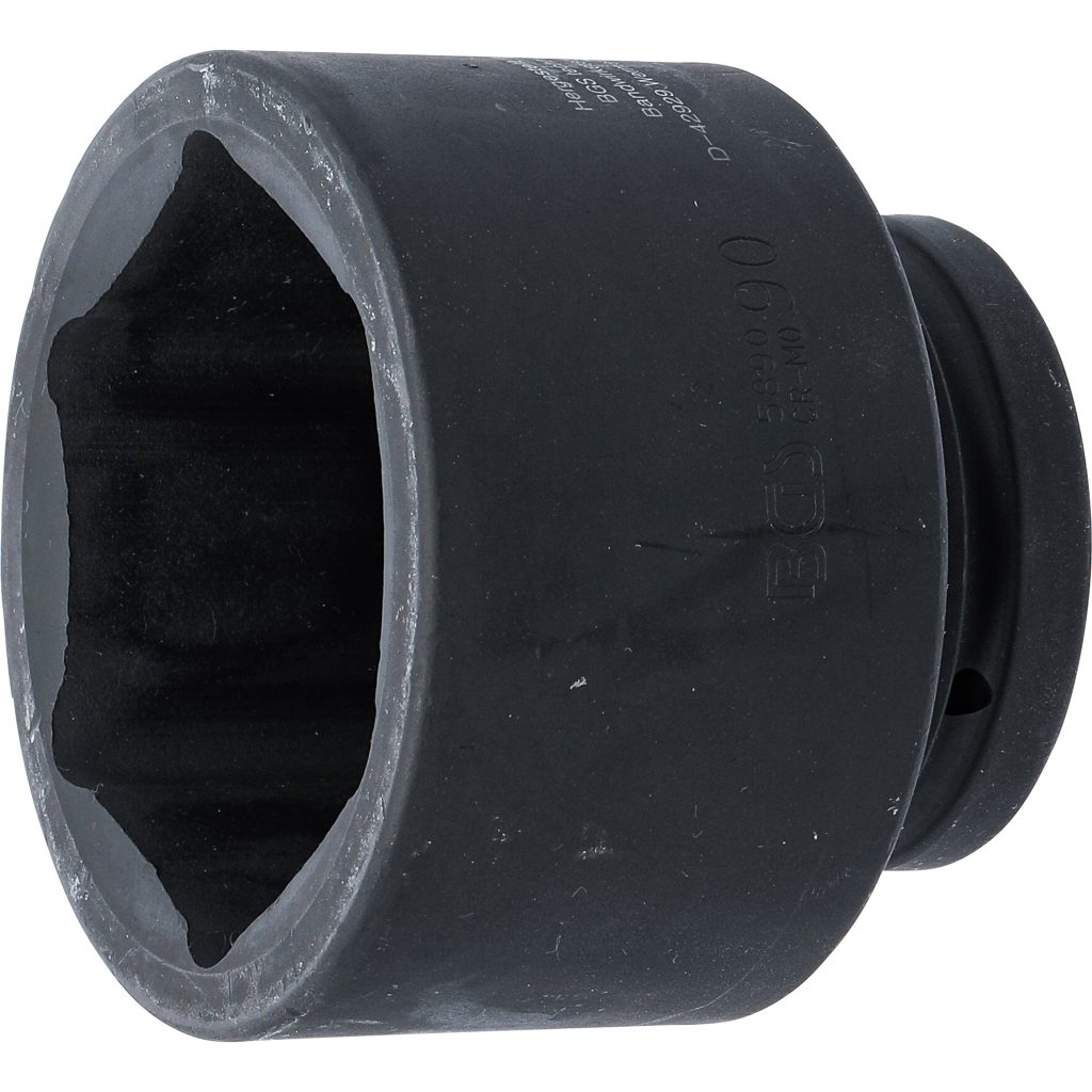 Тази 90mm шестостенна ударна вложка е проектирана за ръчни и ударни гайковерти, осигурявайки надеждна работа при висок въртящ момент в индустриални приложения. Тя разполага с 25mm (1″) вътрешен квадратен захват и шестостенен изходен профил, съвместим с тежкотоварни инструменти за работа с големи крепежни елементи.
