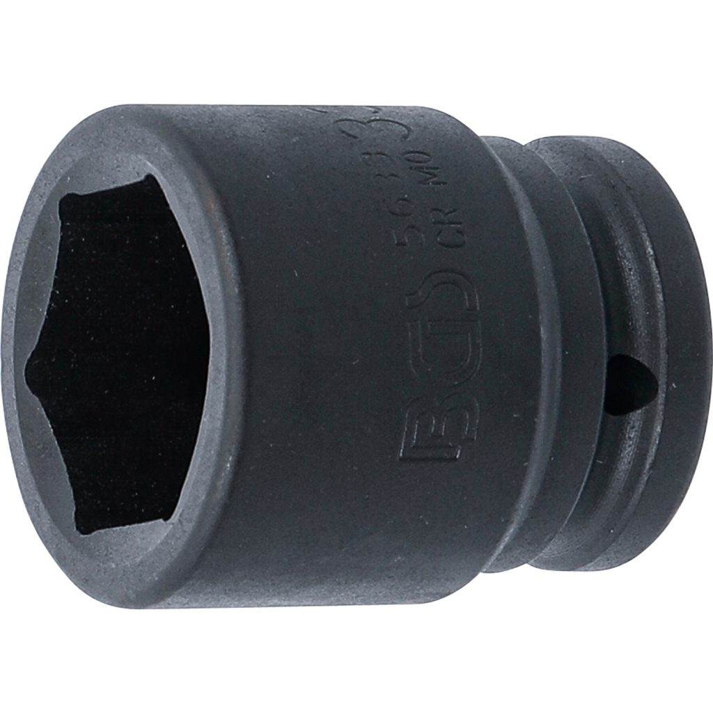 Тази 33mm шестостенна ударна вложка е проектирана за ръчно и ударно използване с гайковерт, осигурявайки отлична здравина и надеждно предаване на въртящия момент. Тя разполага с 20mm (3/4″) вътрешен квадратен захват и шестостенен изходен профил, което я прави съвместима със стандартни тежкотоварни инструменти.