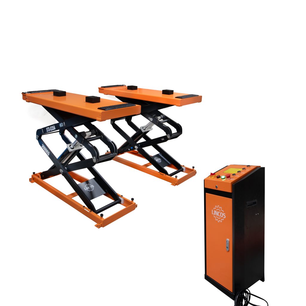 - Четири хидравлични цилиндъра осигуряват равномерно повдигане и спускане