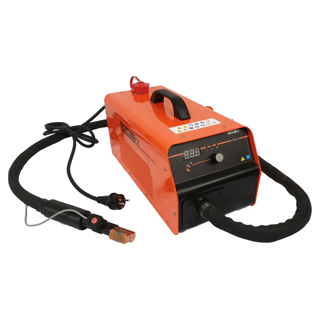 DHI-44 LKW е преносим индукционен нагревател за работилници с интегрирано водно охлаждане за индукционния нагревател и сменяеми удължители на индукционната намотка. По подразбиране, устройството разполага с двуметров горелка с странична (фокусираща) намотка. Други типове индукционни намотки са проектирани като допълнителни аксесоари и са предназначени за различни видове нагряване на ферромагнитни и проводими материали. Фокусиращите намотки са предназначени за нагряване на материали чрез приложение.