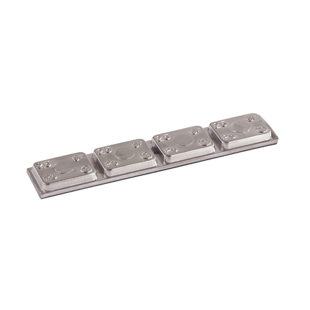 Оловна самозалепваща тежест за баланс на алуминиеви джанти на ванове, автобуси и камиони. Лента от четири тежести с общо тегло 100g (4x25g). Материалът, използван за производството на тежестта, е изключително гъвкав, което позволява адаптиране към структурата на джантата на всяко превозно средство. Оловната самозалепваща тежест гарантира бърз и безопасен монтаж без риск от повреда на джантата. Тази тежест може да се използва като заместител на Hofmann Power Weight – тип 550 и Hatco – тип 071.