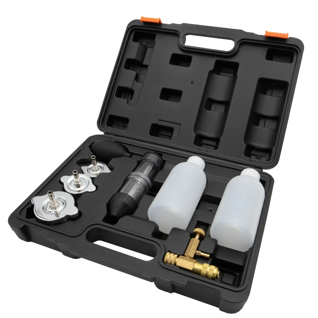 В случай на повредено уплътнение под главата на цилиндъра или самата глава на цилиндъра, част от отработените газове, съдържащи CO2, навлиза в охладителната система. Работният принцип на устройството е основан на измерване на съдържанието на CO2. При увеличено съдържание на CO2, течността реагира с газа и променя цвета си. Целият процес отнема само 5 минути. Нашият тестер предлага почти 100% безопасност.