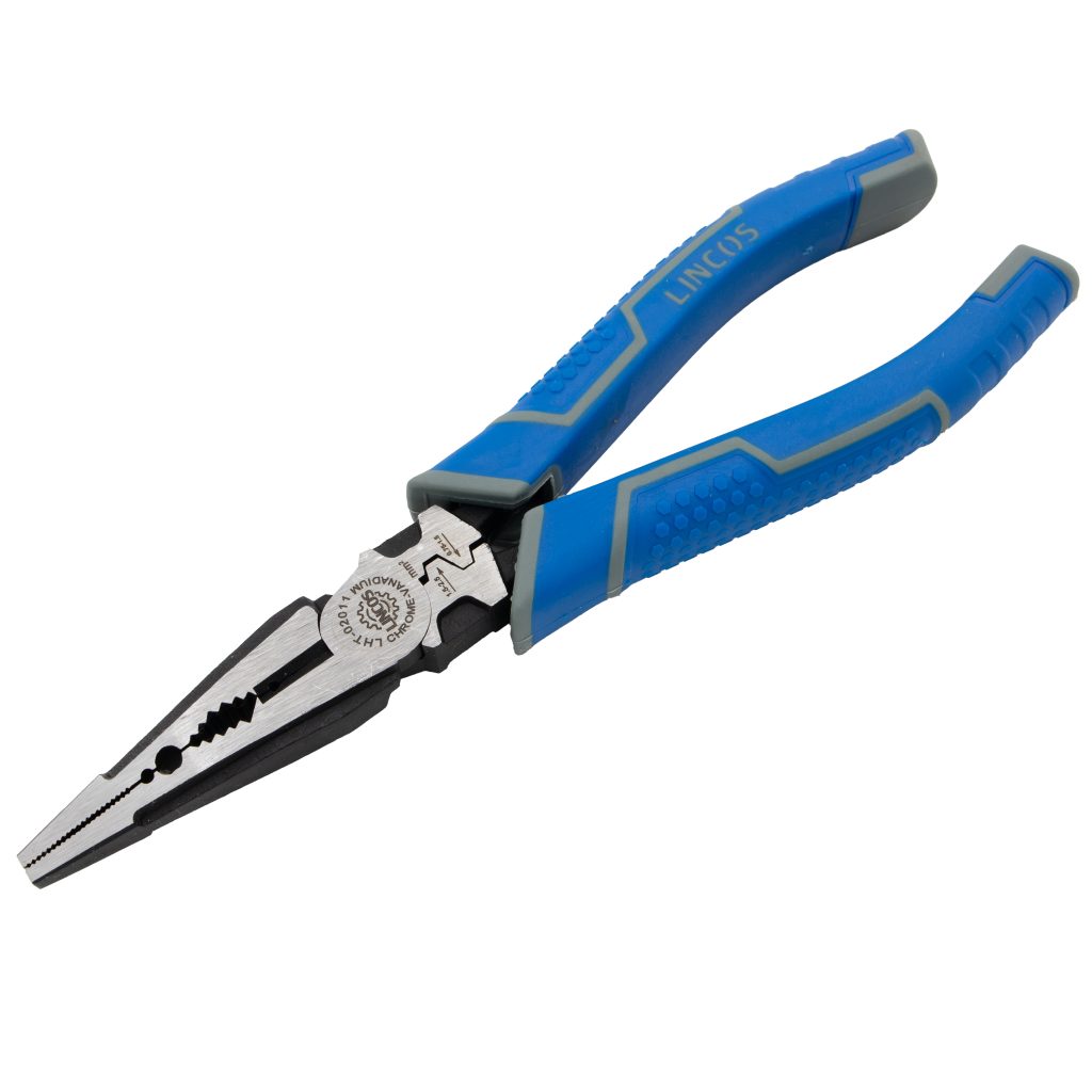 Тези дълги клещи с лостов механизъм (180mm / 7″) предлагат изключителна прецизност при захващане, огъване и рязане. Дългите, тесни челюсти позволяват прецизна и сигурна работа в ограничени пространства, което ги прави идеални за електротехници, техници и ремонтни специалисти.