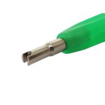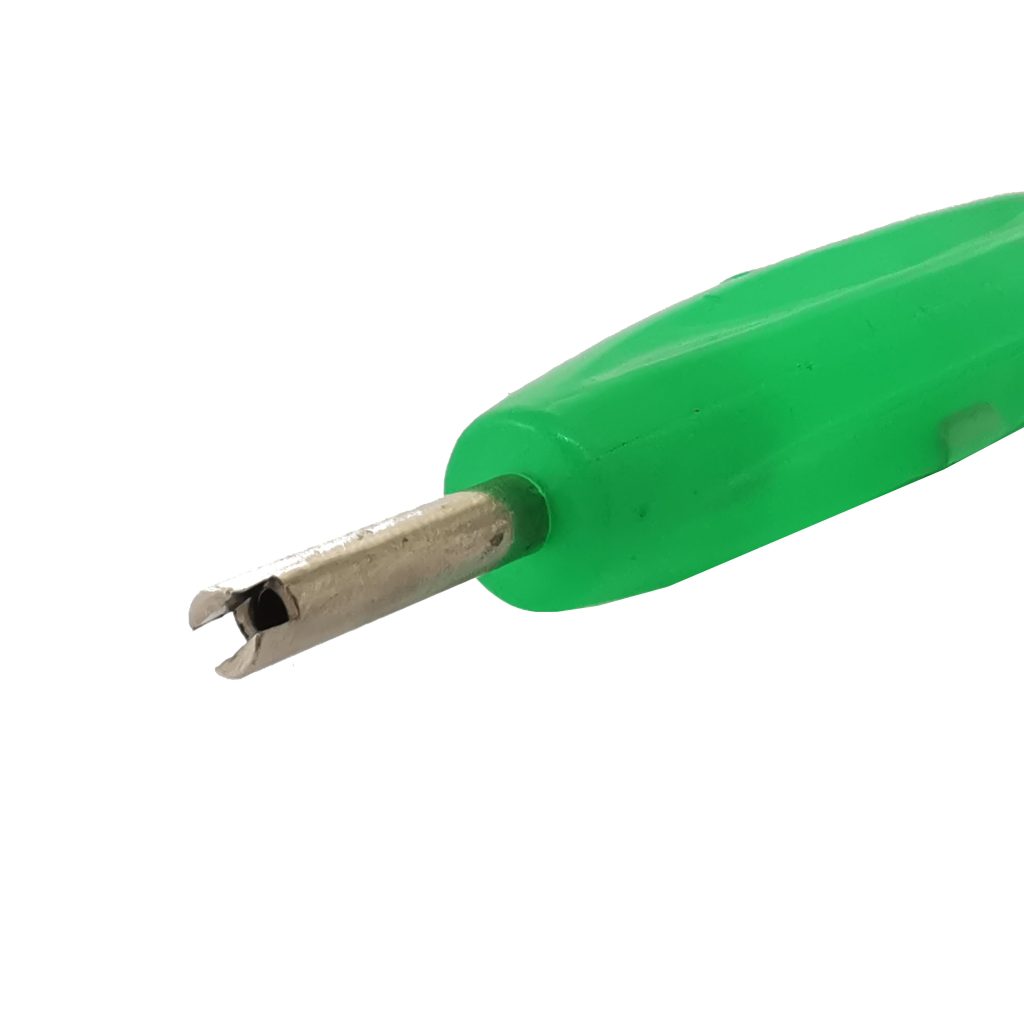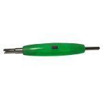 Двустранна отвертка за стандартни VG5 и големи VG8 вентили с магнит в дръжката. Позволява отвертката да бъде прикрепена към всяка метална част. Удобна е, тъй като винаги можете да я държите наблизо, например: на устройството, върху което работите в момента. Отвертката се използва за завиване и премахване на пружинни вложки от вентилите на гуми. Задължителен продукт за сервизи, които ремонтират мотоциклети, автомобили, микробуси, камиони, строителни и селскостопански машини. Отвертката има два накрайника. Дръжката е изработена от зелен композитен материал.