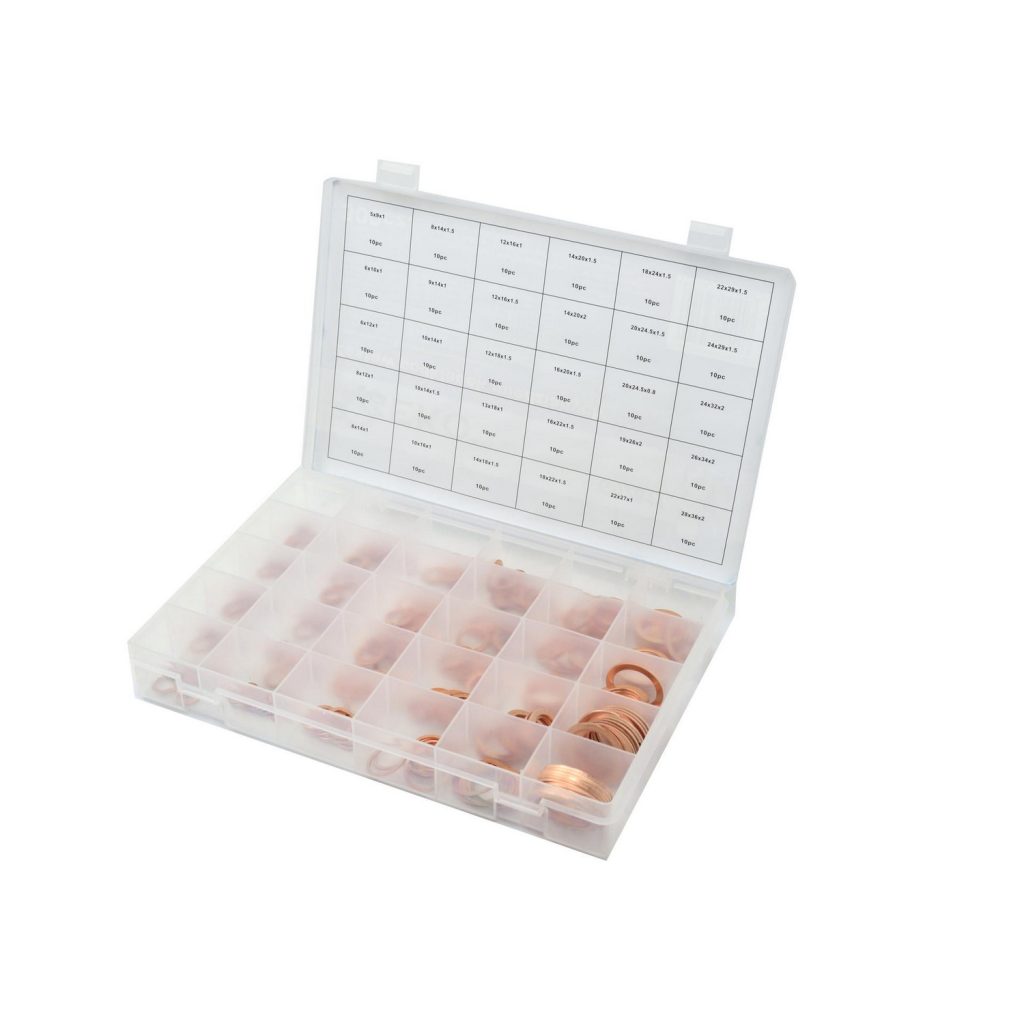 Комплект от 300 броя медни шайби. Медните шайби са устойчиви на корозия в мокри среди, немагнитни и електрически проводими.