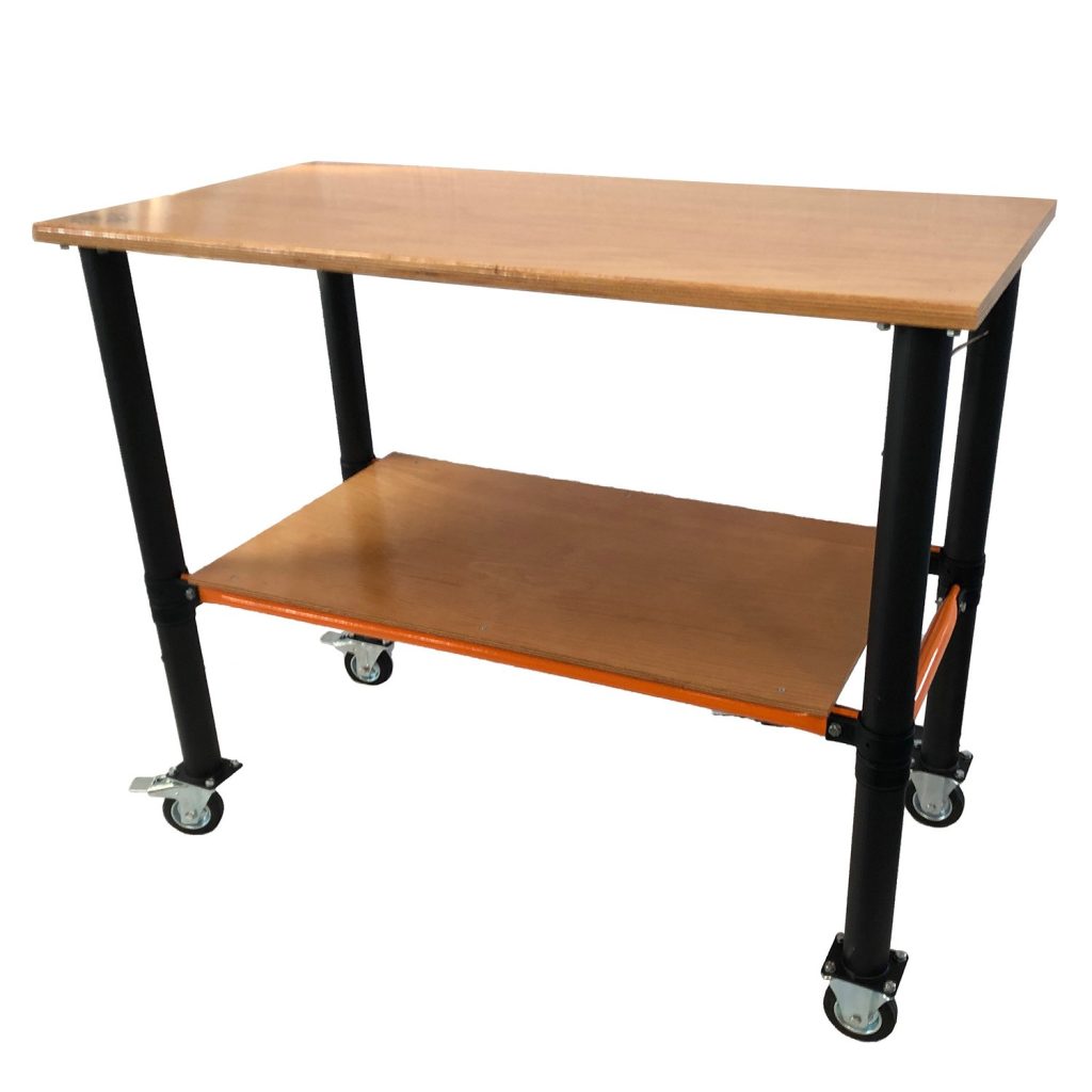 Здрава мобилна работна маса с четири колела и рафт. Две фиксирани и две въртящи се колела с спирачки. Може да се използва както в сервиз, така и в гараж за опаковане или разглобяване. Лесно се премества от място на място.