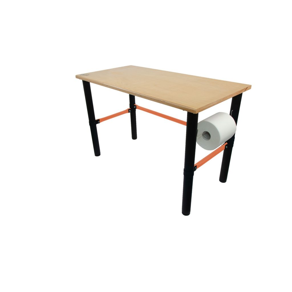 Стабилните метални крака са индивидуално регулируеми, създавайки напълно хоризонтална работна повърхност на неравни повърхности. Работната маса може да бъде сглобена много лесно и бързо (за около десет минути), без нужда от пробиване или специални инструменти. Необходим ви е само 13mm ключ.
