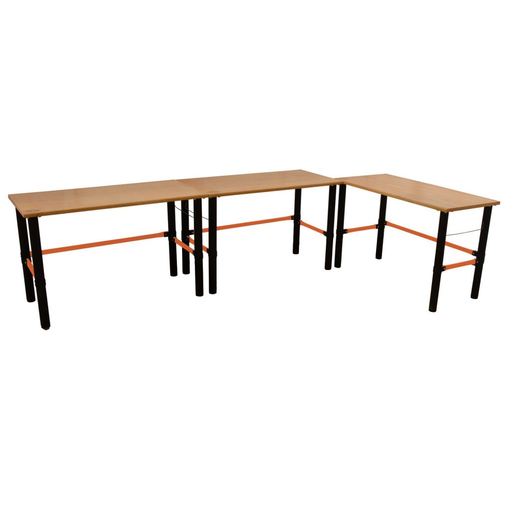Масата може да бъде модулно свързана с множество плотове за създаване на голяма, безшевна работна повърхност.