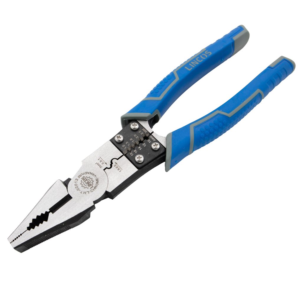 Професионални комбинирани клещи с дължина 8.5 инча, предназначени за рязане, кримпване и об stripping на проводници. Изработени от издръжлива стомана 60CRV, с ергономична дръжка за удобно използване.
