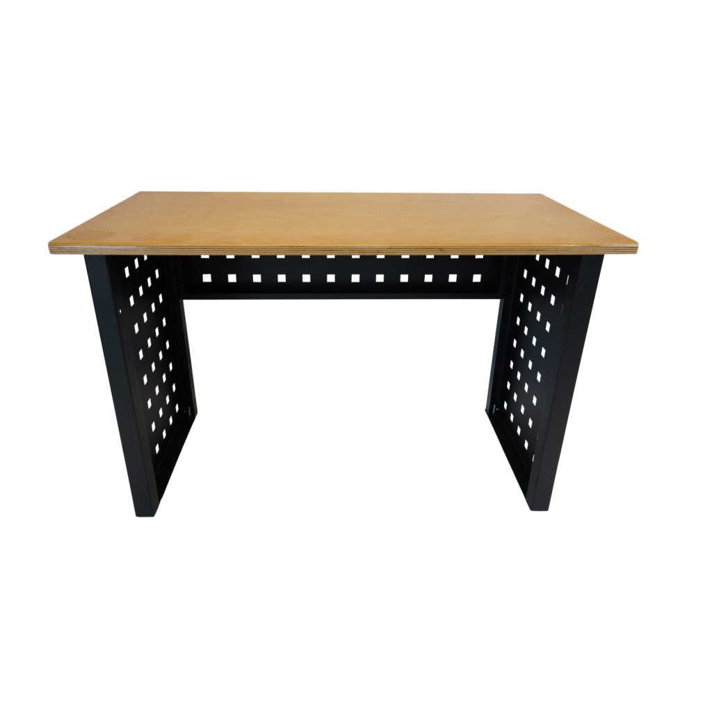Метален офис маса с регулируеми крака. Плота е изработен от 125x62см, здрав, 25мм лакиран буквен многослоен шперплат. Височина: 80см. Регулируема височина: 0-40мм.