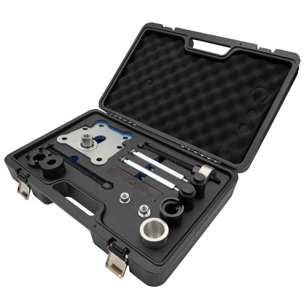 Този комплект инструменти за разглобяване на корпус на PDK трансмисия е предназначен за прецизно и ефективно обслужване на модели Porsche Cayenne, оборудвани с PDK трансмисии с двоен съединител. Независимо дали заменяте електрическия сноп, премахвате корпуса на двойния съединител или изваждате входящия вал, този комплект осигурява специализираните инструменти, необходими за оптимизиране на процеса и предотвратяване на повреда на компонентите.