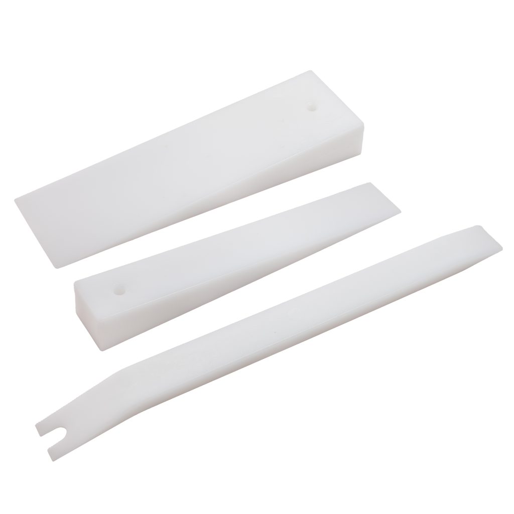 Комплект инструменти за сваляне на пластмасови панели, 3 бр. Комплект от 3 инструмента, специално проектирани за премахване на пластмасови крепежи на обшивката. Тези инструменти са изработени от POM (полиоксиметилен), което осигурява изключителна издръжливост и гъвкавост. С този комплект можете лесно да работите в автомобилите, сваляйки вътрешни панели без да причинявате повреди.