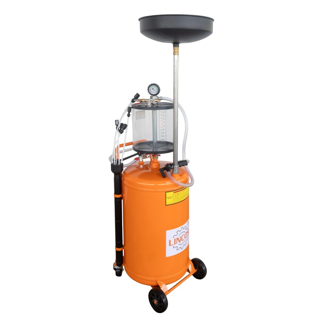 Този пневматичен екстрактор за масло е професионален инструмент, проектиран за ефективно извличане и събиране на масло в автомобилни работилници и индустриални среди. Той разполага с надежден резервоар с капацитет 80L, допълнен от прозрачен измервателен контейнер с капацитет 10L за прецизно наблюдение на обема на извлеченото масло и дренажна тава с капацитет 15L за удобно източване на повърхността.