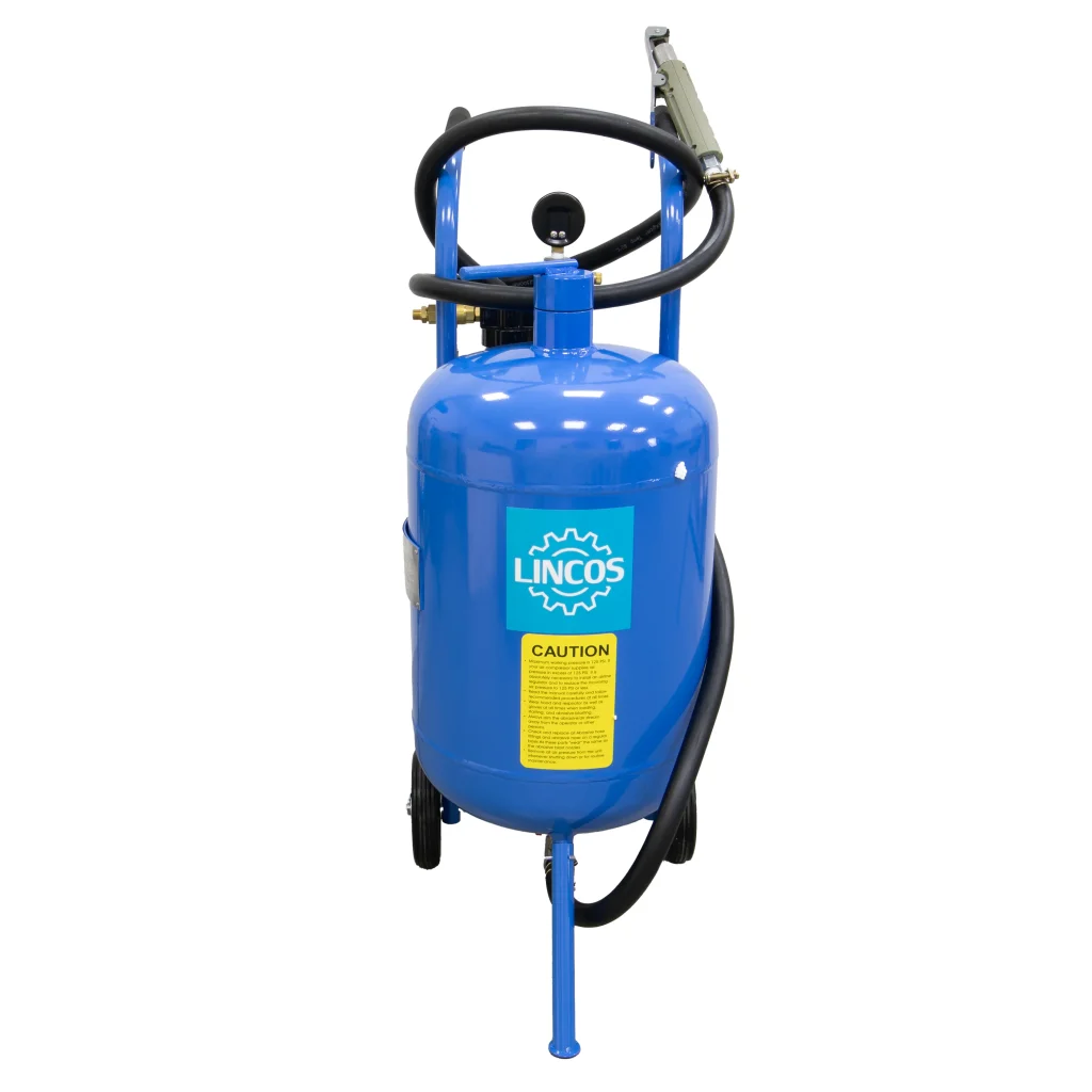Обем на резервоара: С капацитет от 10 галона (приблизително 38 литра), резервоарът държи значително количество абразивен материал, позволявайки продължителна употреба между презарежданията.