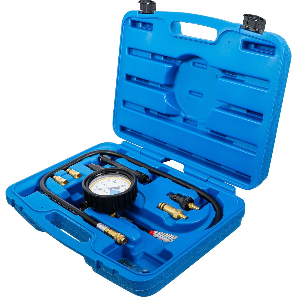 Този комплект за тестване на загуба на налягане е проектиран за точно откриване на налягания на течове в единични цилиндри на бензинови и дизелови двигатели. Идеален за автомобилна диагностика, комплектът включва манометър с индикатор и комплект от 7 адаптора за съвместимост с широк спектър от типове двигатели, включително мотоциклети и дизелови двигатели на VW.