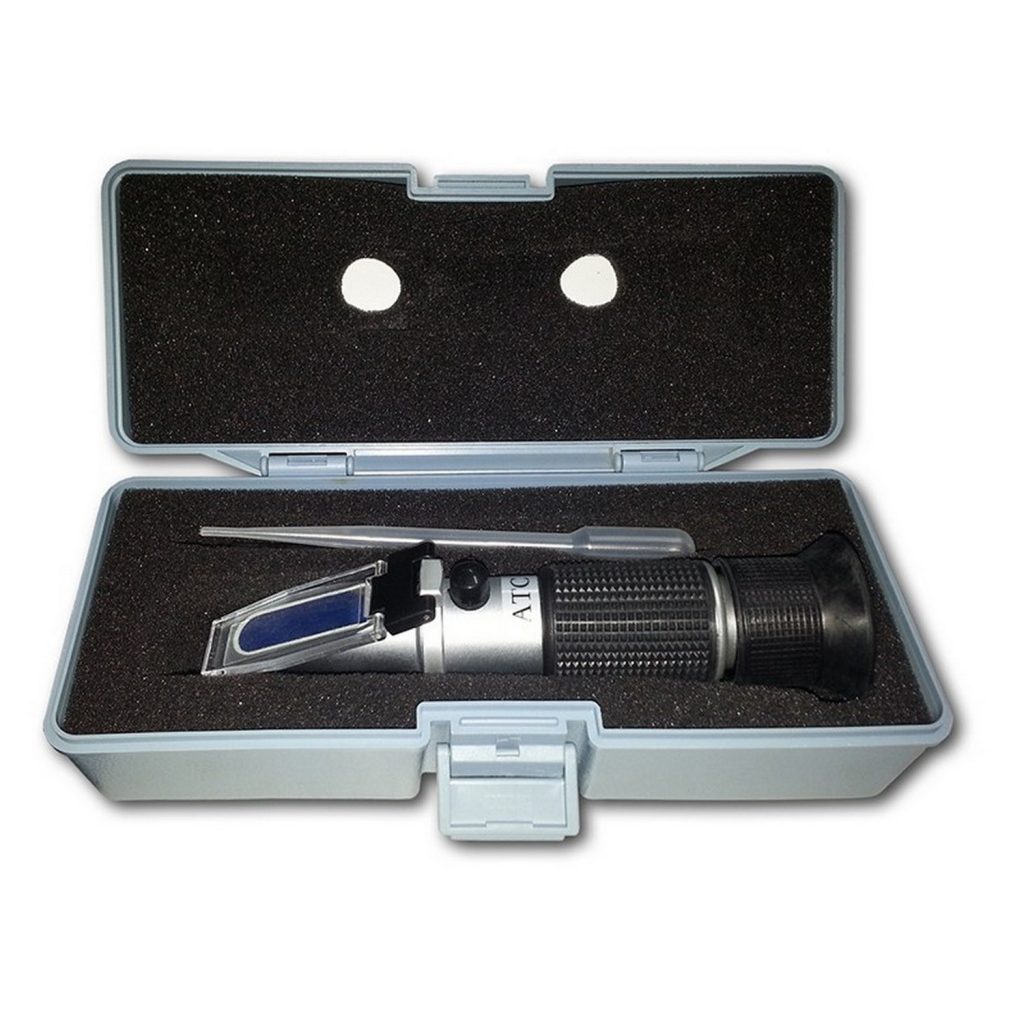 Професионален оптичен тестер за течности, автомобилен рефрактометър, се използва за измерване на температурата на замръзване на хладилната течност, течността за чистачки и плътността на електролита. Може да се използва за измерване на течности, използвани във всички превозни средства, оборудвани с двигатели, охладени с течности на основата на етилен и пропилен гликол. Батерии с сулфатна киселина като електролит.