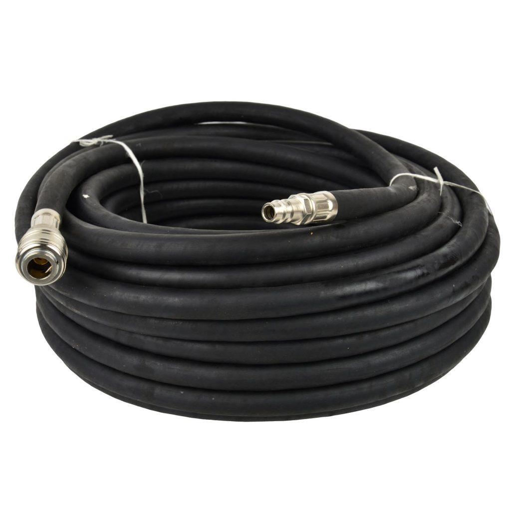 - Материал: Изработен от висококачествена гума, маркучът предлага изключителна гъвкавост и устойчивост. Гуменият материал е известен със своята устойчивост на абразия, атмосферни влияния и удари, осигурявайки дълъг живот дори в изискващи работни условия. Той също така предлага добро балансирано между издръжливост и маневреност, което го прави лесен за работа и позициониране.