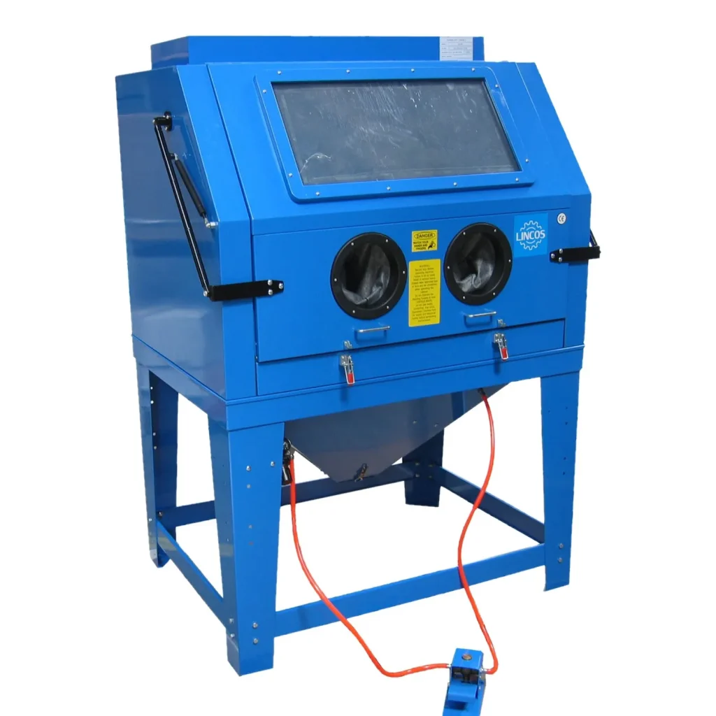 - Гъвкав маркуч, вграден в кабината за песъкоструене