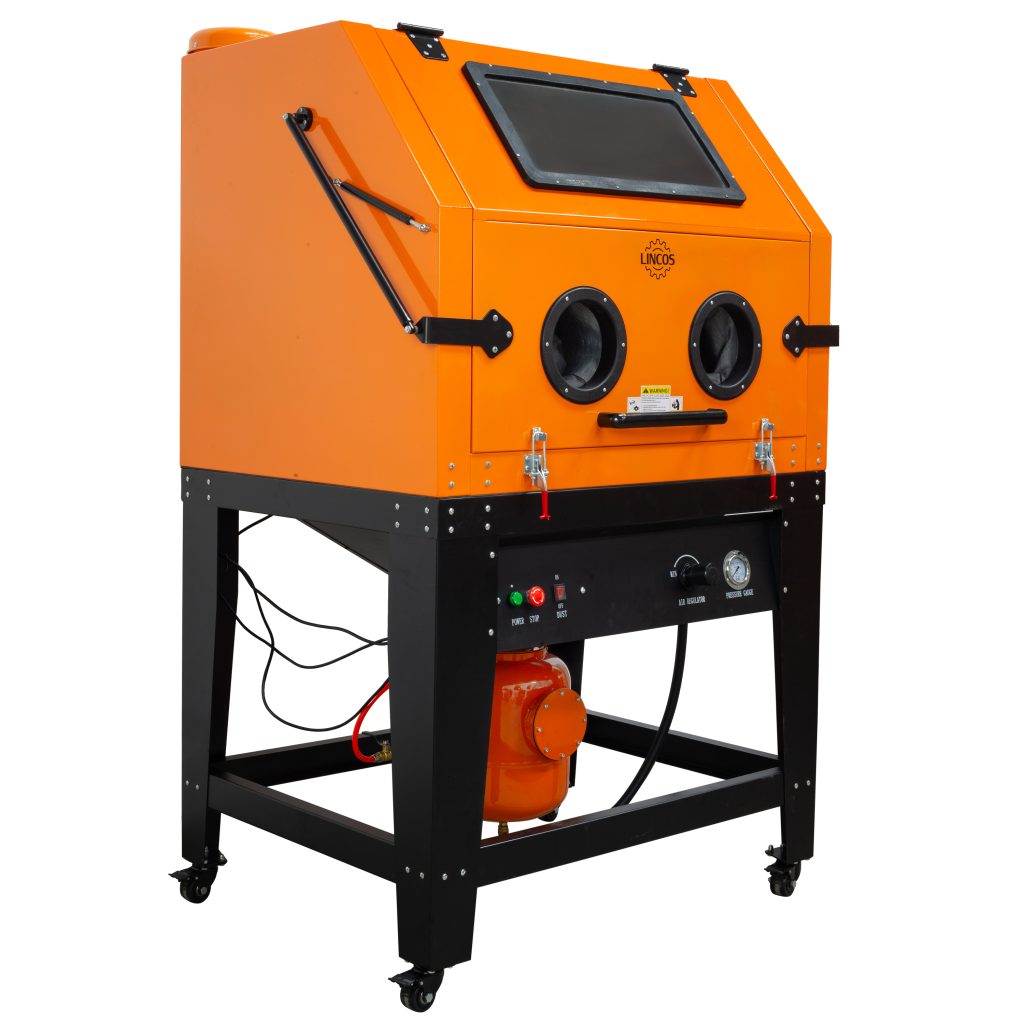 Кабинетът работи в диапазон на налягане от 80–110PSI (5.5–7.6bar), с максимален лимит от 125PSI (8.6bar). Неговият мотор с мощност 420W захранва системата за събиране на прах, докато 1450W мотор осигурява силно и надеждно представяне при песъкоструене.