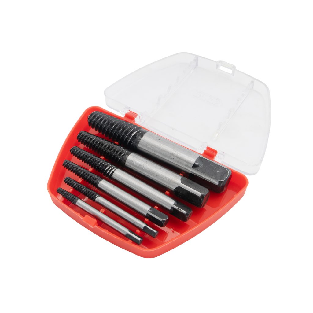 - Този комплект от 6 части за изваждане на винтове е незаменим инструмент за премахване на счупени или повредени винтове и болтове в широк диапазон от размери, от M3 до M18.