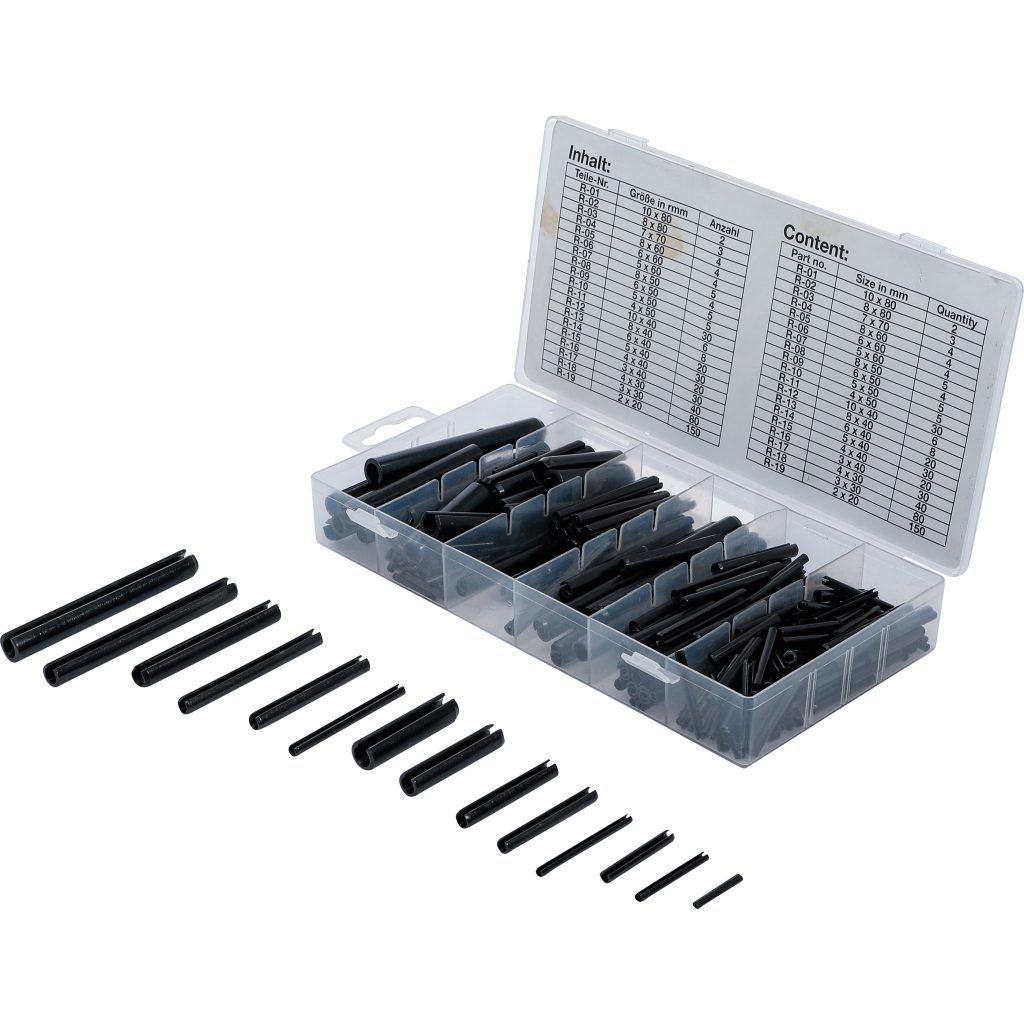 Асортимент от цилиндрични шпонки с прорези, метричен, 450 бр.