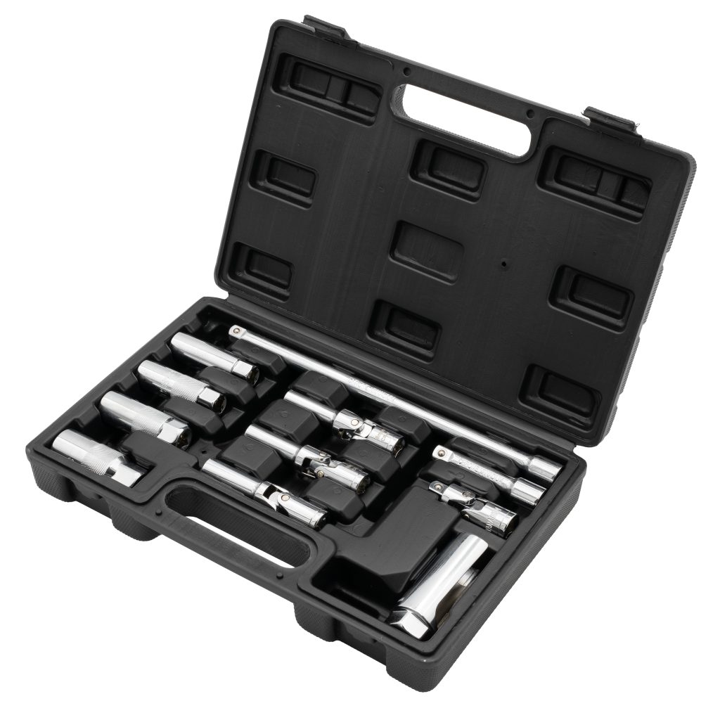 С този комплект можете безопасно да демонтирате и монтирате запалителни и подгревни свещи, без да ги повредите или да нанесете щети на двигателя. Комплектът включва специализирани вложки с различни размери и конфигурации, за да се адаптират към различни видове запалителни и подгревни свещи.