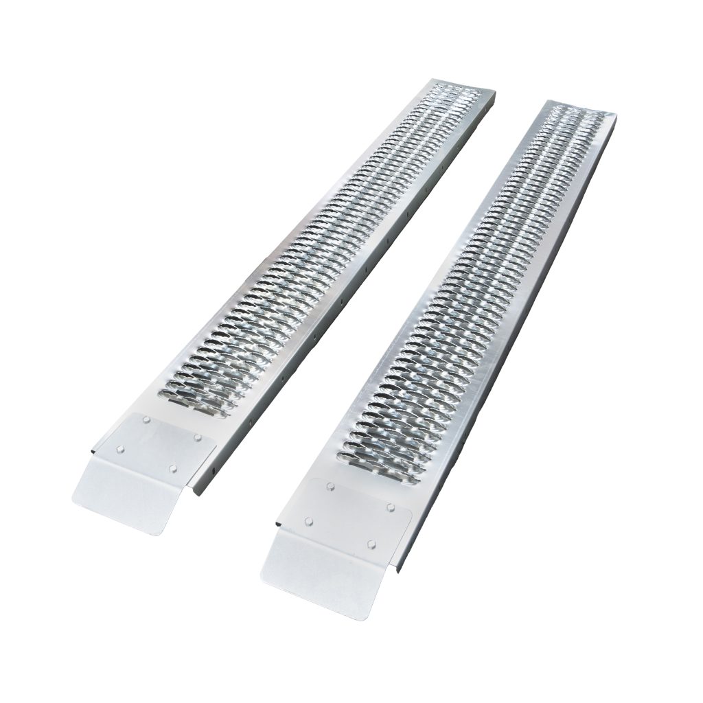 Идеален за натоварване на косачки, електрически инструменти, ръчни колички, колички за строителство, мебели, инвалидни колички и други оборудвания. Устойчиви, солидни стоманени рампи, които лесно се закрепват към дъски с включените крепежни елементи.