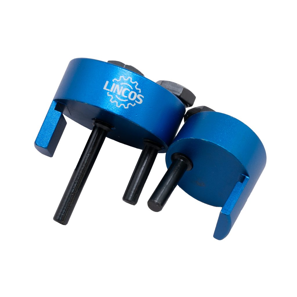 Комплект от два универсални инструмента е полезно средство за монтаж на еластични ремъци на различни съвременни превозни средства. Включва регулируеми заключващи щифтове, които държат инструментите на място по време на работа.