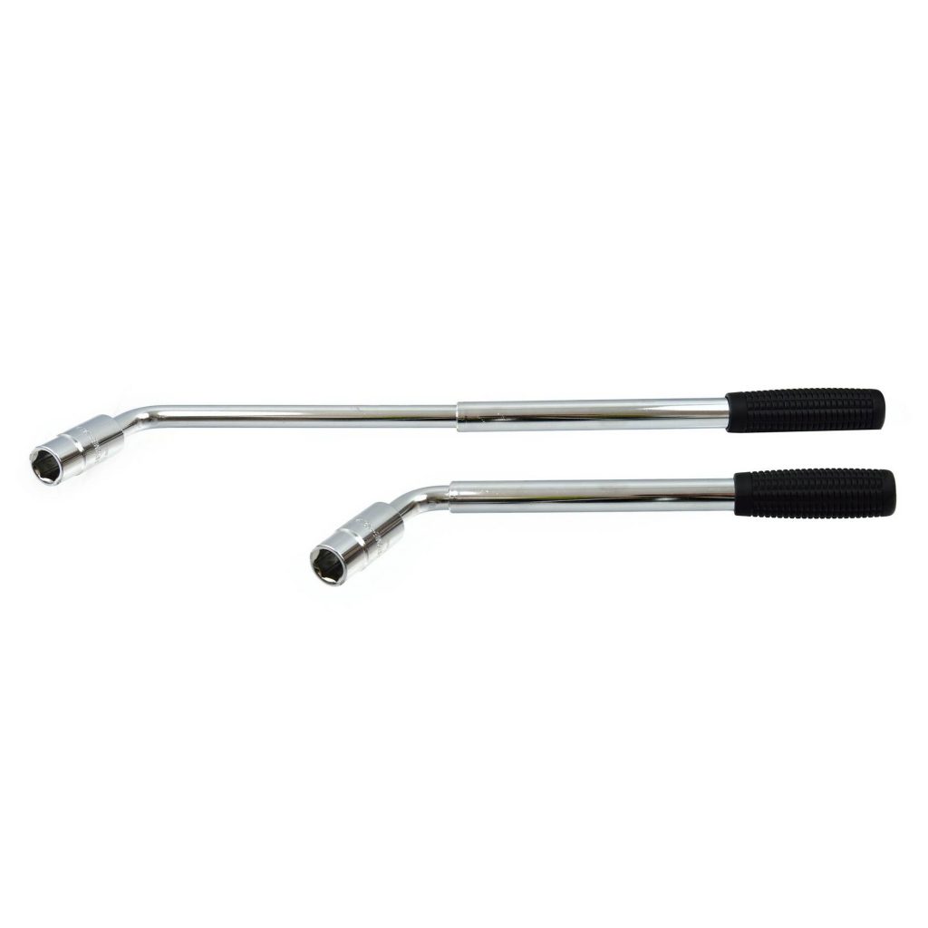 Телескопичен ключ за колела с един накрайник 17x19mm и един 21x23mm. Общата дължина е 34.5cm, разширява се до 50cm. Разширяемата дръжка осигурява допълнителен въртящ момент за лесно развиване на всички гайки на колелата. Ключът е извит под 45° за по-лесен достъп до колелата. Оснащен е с издръжлива, подсилена, нехлъзгаща се гумена дръжка за допълнителен захват и комфорт. Основно се използва при сваляне и монтиране на колела.