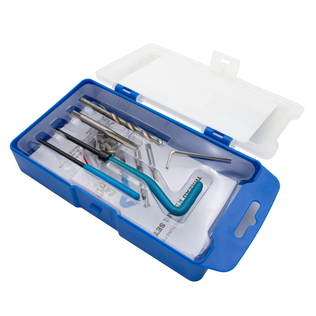 Комплектът включва всички необходими инструменти за възстановяване на резби, така че не е нужно да закупувате допълнителни инструменти. Изработен е от висококачествени материали, което гарантира дълъг експлоатационен живот и издръжливост. Незаменим инструмент за всеки автосервиз, където се налага ремонт на резби.