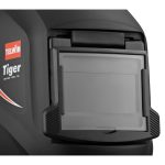 - Благодарение на системата Lift-Up, просто спуснете прозореца, съдържащ адиацитното стъкло по време на заваръчни операции, докато прозрачният стъкло осигурява защита, с отворен прозорец, за шлифовъчни операции или с други електрически инструменти, позволявайки работа със свободни ръце.