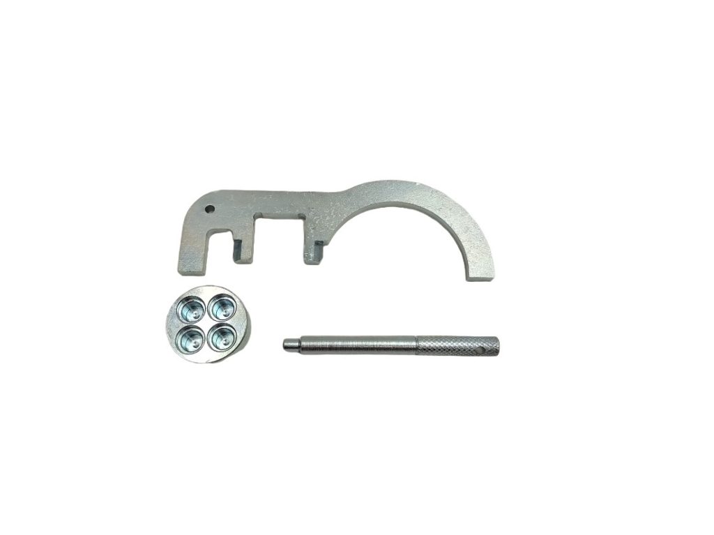 Комплектът включва заключваща пластина за разпределителен вал, заключващ щифт за маховик и накрайник за завъртане на колянов вал.