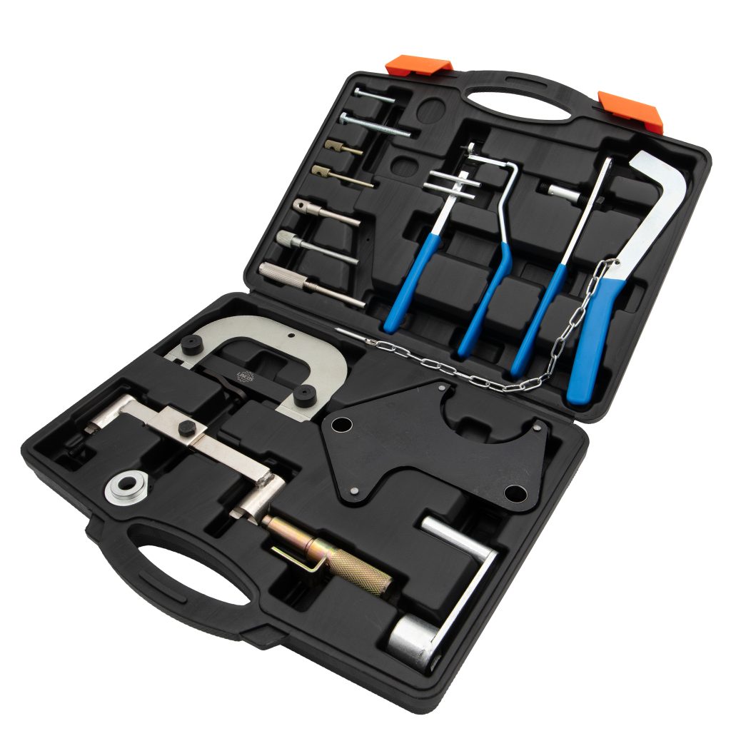 Комплектът за синхронизация е основен продукт за двигатели на Renault, който позволява точното фиксиране на времето на двигателя по време на смяна на веригата или ремъка и други поддържащи дейности. Инструментът гарантира, че разпределителните валове, коляновият вал и други свързани компоненти остават в правилната позиция по време на работата, предотвратявайки спирането на времето на двигателя.