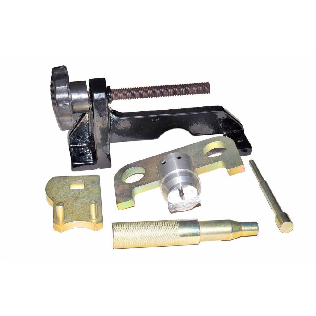 • Заключващи инструменти за колянов вал: Тези заключващи инструменти се използват за фиксиране на коляновия вал на място, предотвратявайки неговото въртене по време на работа върху ангренажната верига. Те помагат да се поддържа правилната времева връзка между коляновия и разпределителните валове.