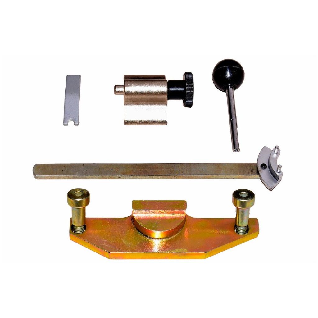 Този специализиран комплект инструменти съдържа необходимите инструменти за синхронизация и поддръжка на двигатели Volkswagen, Audi и SEAT 1.9 SDI и TDI. Комплектът позволява правилно заключване и регулиране на разпределителния вал и ангренажния ремък, осигурявайки оптимална работа и надеждност на двигателя.