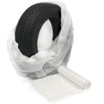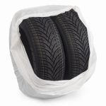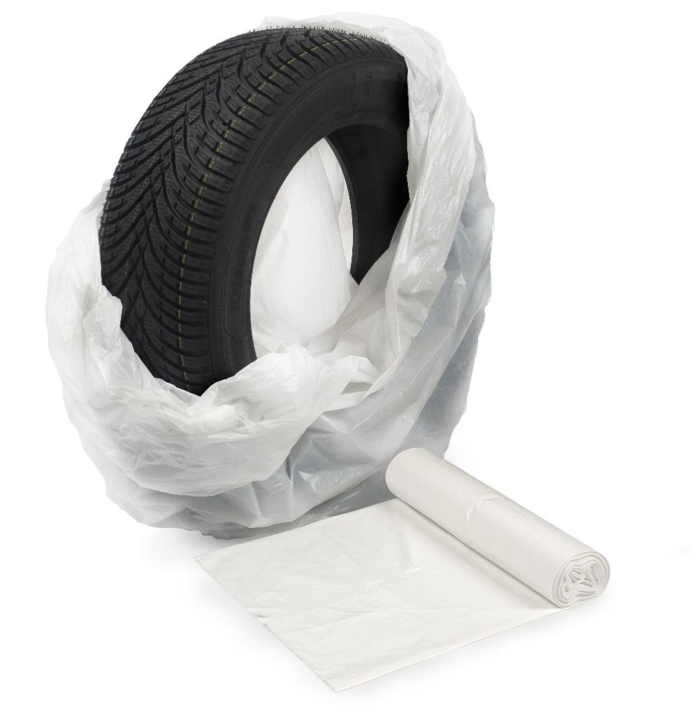 Висококачествени торби за защита и съхранение на гуми или джанти след сезонна смяна на гуми, както и за транспортиране на гуми. Белите пластмасови торби с размери 1100 x 1000mm предпазват гумите от атмосферни влияния по време на съхранение. Поради големината си, те могат да поберат до 2 гуми на торба. Предлагаме торби, изработени от дебела и здрава LDPE пластмаса с дебелина 30 микрона и подсилени със здрав шев. Устойчиви на повреди и случайно разкъсване. Торбите за гуми са опаковани на ролки от 10 броя. Те са перфорирани, за да улеснят отделянето на отделните торби една от друга, което допълнително елиминира риска от повреда. Благодарение на белия цвят на торбата, бележките и надписите, направени с тъмен маркер, са ясни и добре видими. Това улеснява намирането на правилната гума за клиента при получаване или при следваща смяна на гуми. Забележка: Прегледните снимки показват гуми 205/55 R16 и джанти 205/70 R16.