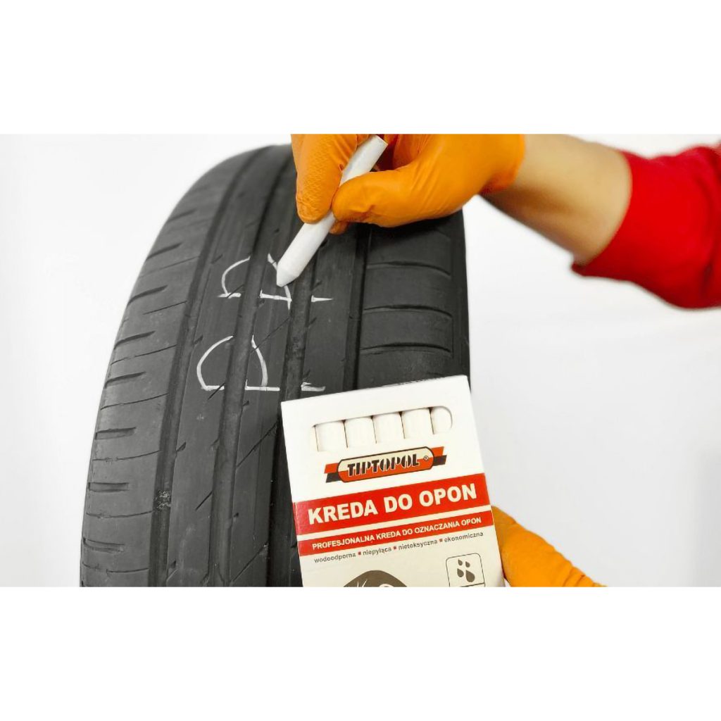 Водоустойчив, постоянен, нетоксичен и безпрашен тебешир, ефективен както на сухи, така и на мокри повърхности. Белият тебешир (маркер) се използва за маркиране или описване на повредените участъци на гумата по време на ремонт. Той е също така необходим за маркиране на гуми по време на сезонна смяна на гуми. Тебеширът е ефективен на практически всяка повърхност, включително гума, метал и боя.