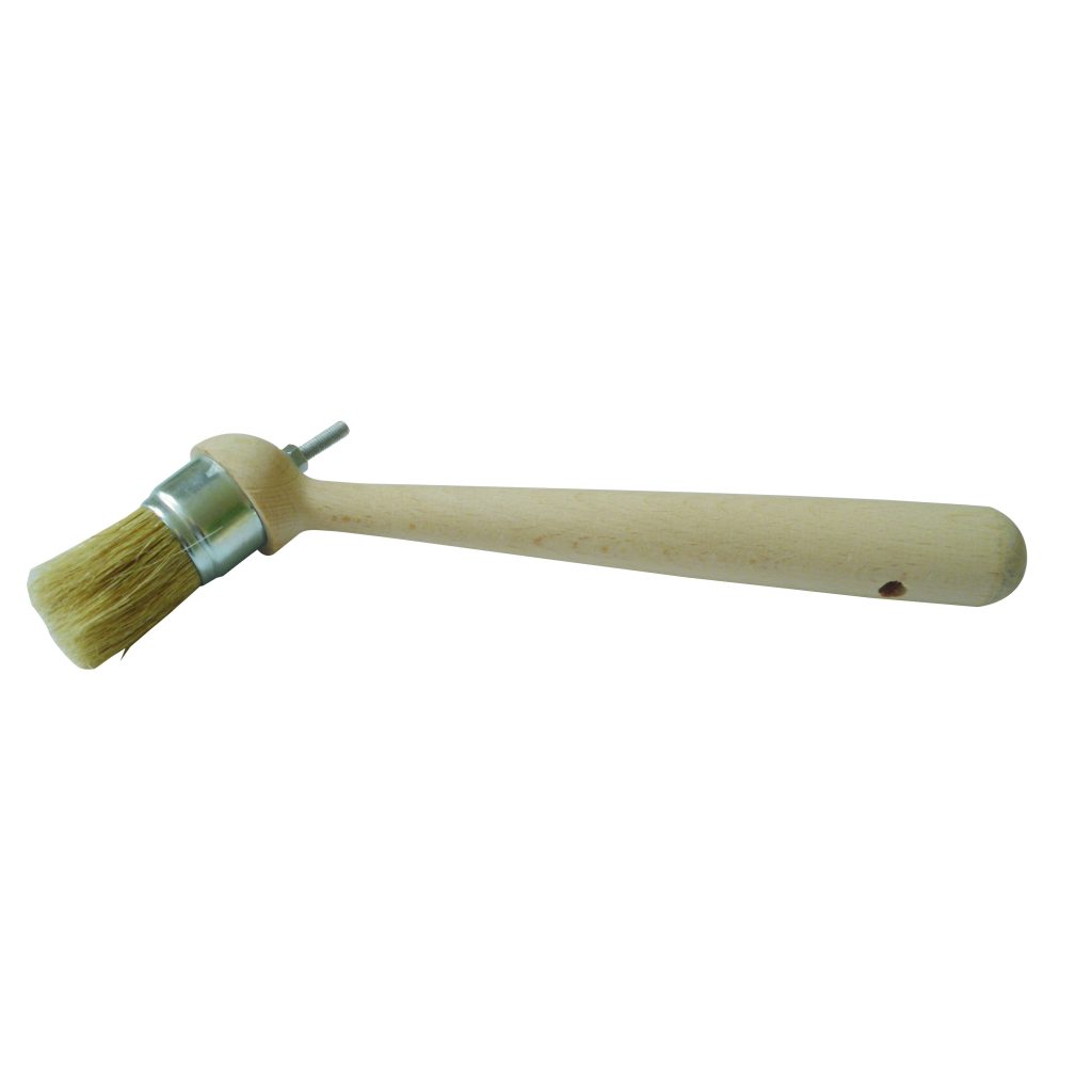 Издръжлива, висококачествена ъглова четка, предназначена за нанасяне на монтажни пасти върху гумата и джантата по време на монтаж на гуми. Четката е изработена от естествени косми и полиестер, с цинково покритие на капачката и ергономично оформена дръжка от естествена твърда дървесина. Ъгловата глава на четката улеснява нанасянето на паста върху джантата без напрежение на китката. Четката не губи космите си по време на употреба, което я прави дълготрайна.