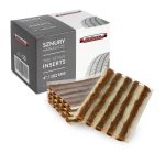 Вложката за ремонт на гуми се използва за аварийно отстраняване на пробиви в протектора на безкамерни гуми, без необходимост от сваляне на гумата от джантата.