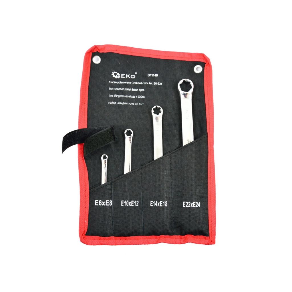 - Комплектът включва четири звездообразни/Е-образни ключа: E6xE8, E10xE12, E14xE18, E22xE24