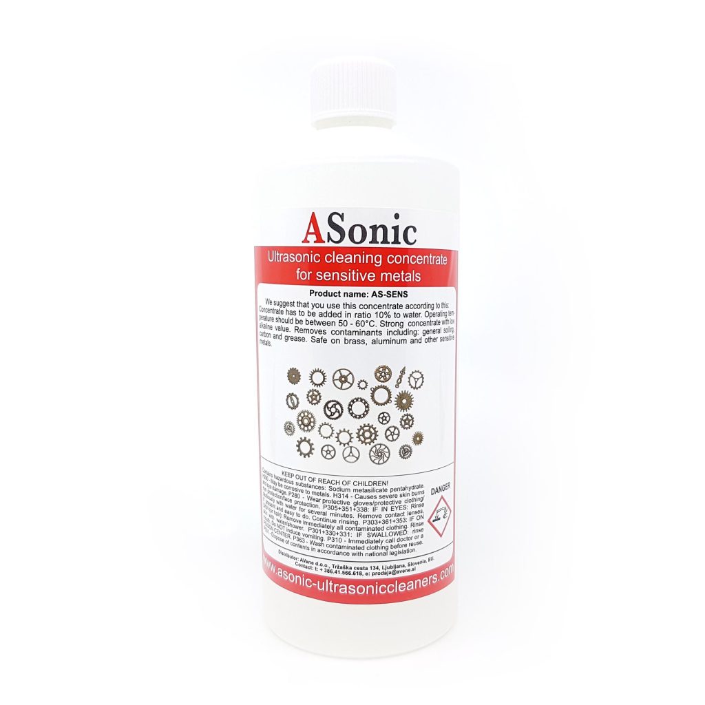 Почистващият концентрат AS-SENS има специална формула за почистване на чувствителни материали без да ги уврежда. Този концентрат е безопасен за употреба върху много материали като месинг, алуминий, мед, цинк, калай и сплави. AS-SENS не трябва да уврежда тези видове продукти, въпреки че препоръчваме да тествате всички ултразвукови почистващи концентрати преди ново приложение върху материали, които не сте почиствали преди, или се свържете с нас за допълнителна информация. Ултразвуковите почистващи концентрати ASonic са проектирани не само за професионална/индустриална употреба, но и за хоби употреба.