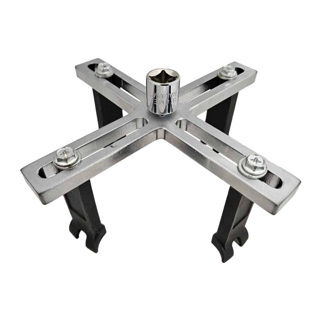 За сваляне на пластмасовия винт на капака на горивния резервоар. Закрепването е лесно и бързо. Разполага с четири специално проектирани ръкава за лесно приложение. С помощта на закрепващия механизъм, ръкавите могат да бъдат фиксирани в правилната позиция. Отличен за използване в тесни пространства.